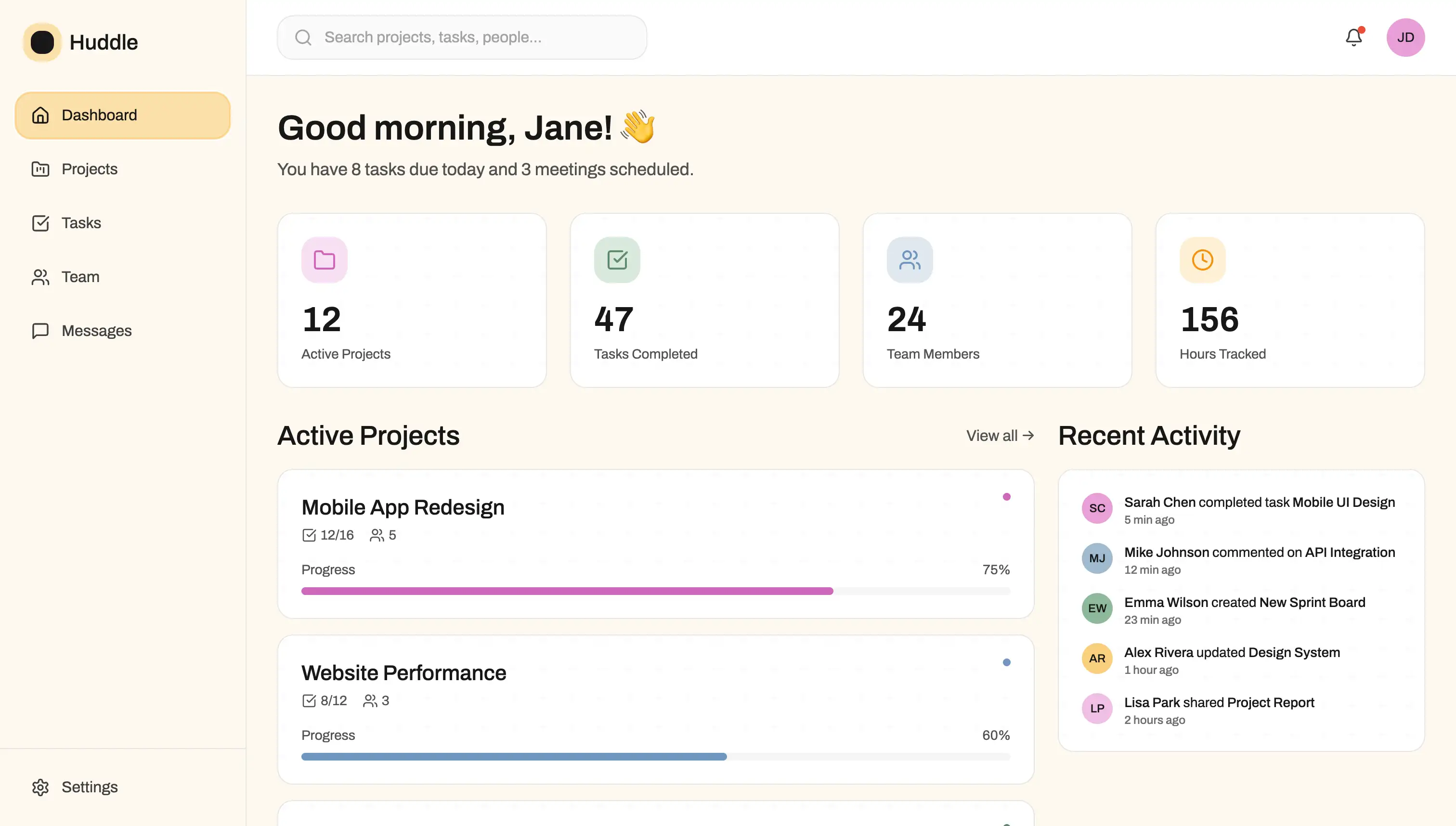 Huddle is built to feel warm and supportive. It helps teams work together in a way that feels easy, not forced. If you want a space that keeps things clear and calm, Huddle gives you that. Start for free and see how it fits your team.